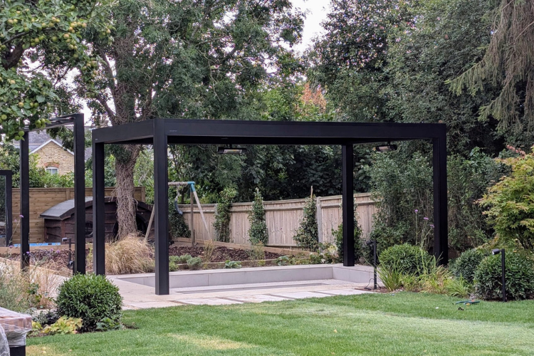 This project in Maidenhead demonstrates how a bespoke aluminium pergola can add both functionality and striking style to a newly landscaped garden. Installed in collaboration with the client’s landscaper, the pergola provides a year-round outdoor retreat with lighting, heating, and weather protection built in.