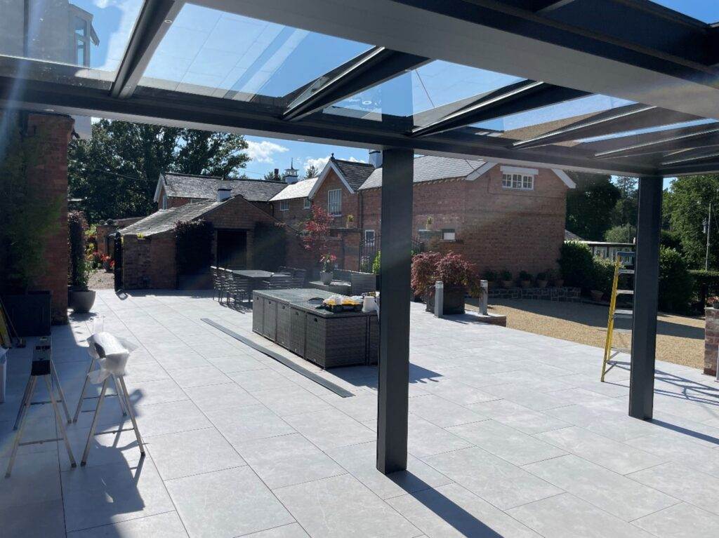The B700 pergola with fixed glass roof panels was the ideal choice, providing ample natural light while offering full weatherproofing. By fixing the pergola to the existing wall and adding bespoke flashing, we ensured a seamless, watertight fit.