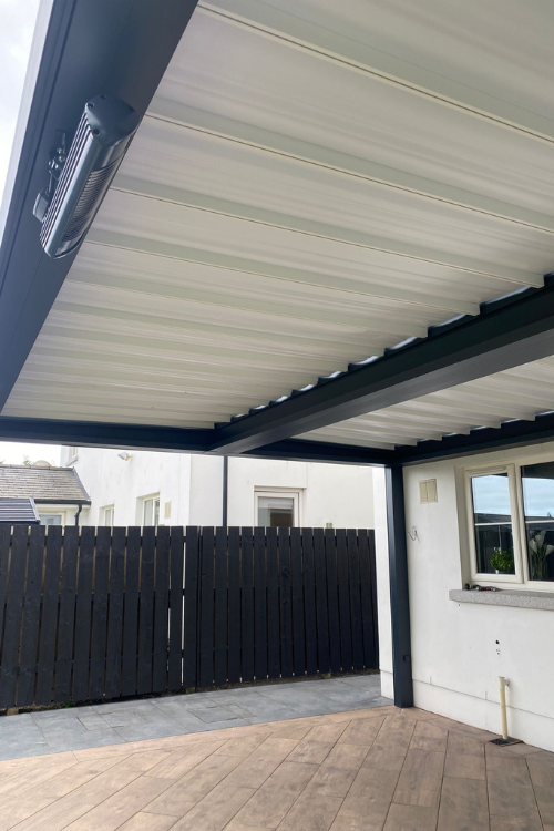 The result is a stylish, versatile outdoor space that can be used all year round. Whether for alfresco dining in the summer or cosy evenings outside in winter, this pergola has become a true extension of the client’s home.