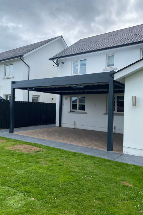 This private client in Aberdeenshire wanted to transform their existing patio into a space that could be enjoyed year-round. The brief called for a large, modern pergola that offered both weather protection and flexibility.